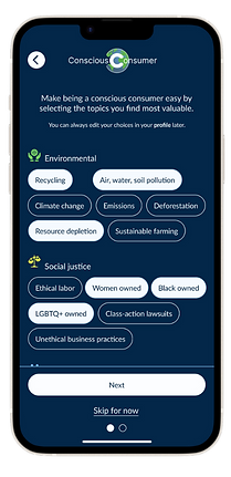 How might we make information about a company’s social and environmental impact easily accessible to all consumers so they can make informed decisions on where they spend their money.